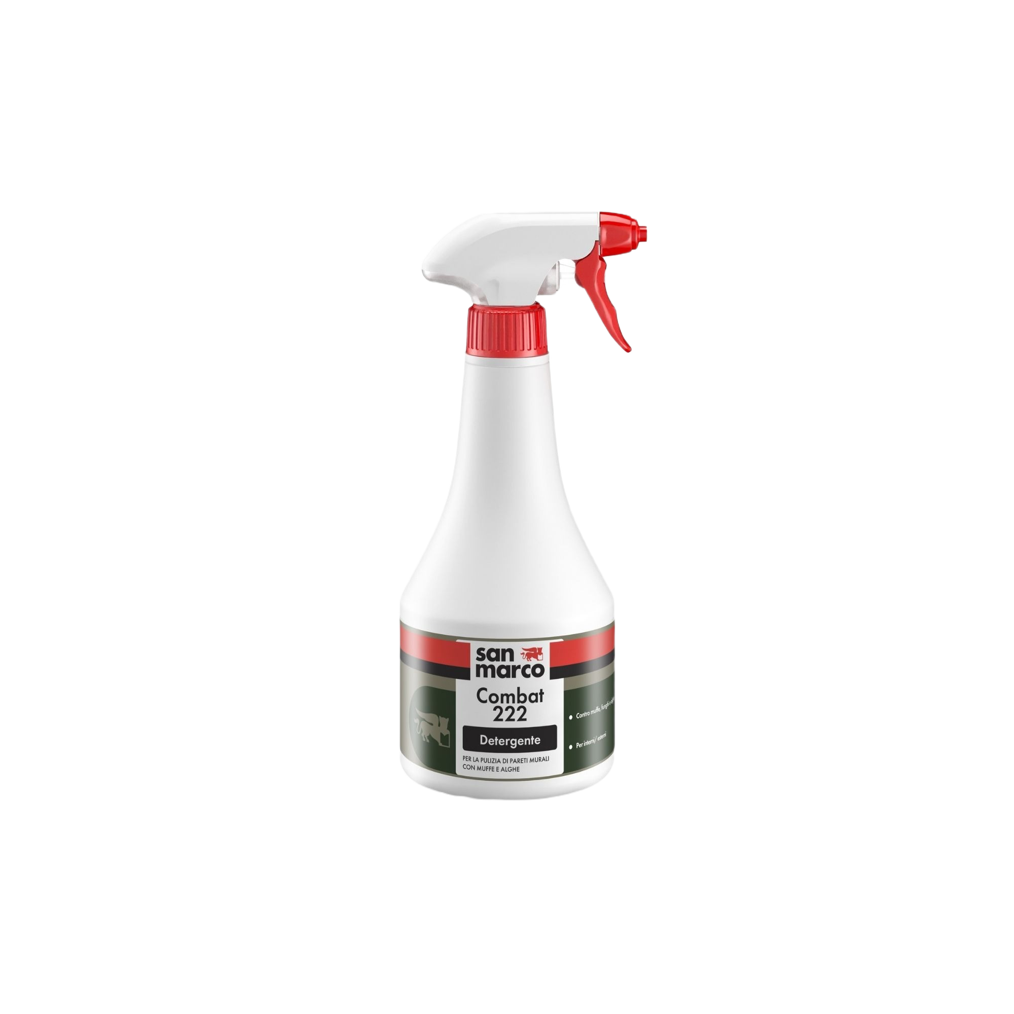 COMBAT 222 è un detergente per la pulizia di superfici infestate da muffe, funghi o alghe. Si applica su qualsiasi tipo di parete murale, interna o esterna, e su pitture o rivestimenti plastici esistenti.