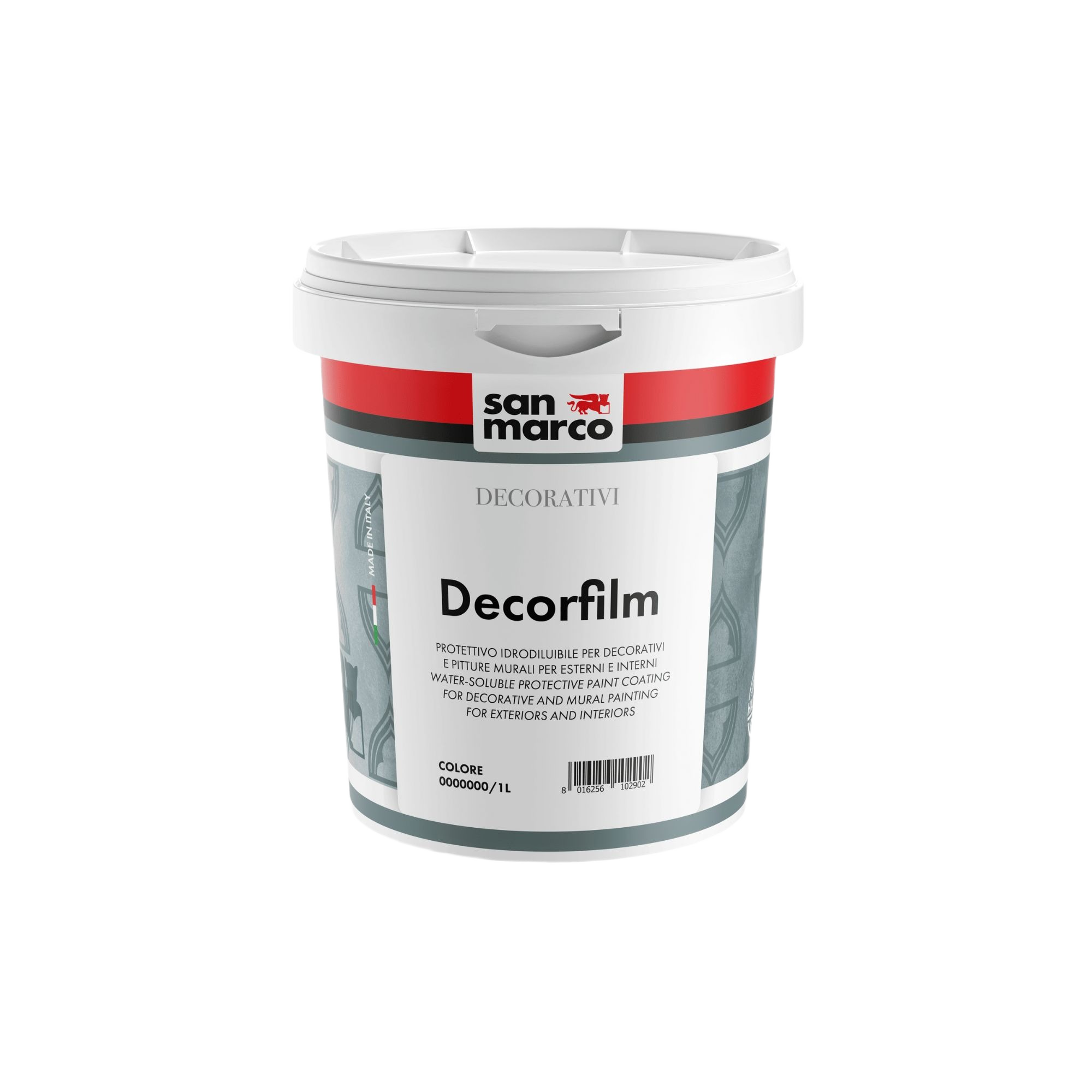 DECORFILM è un prodotto a base d’acqua specifico per la protezione di superfici interne ed esterne trattate con finiture decorative, idropitture o smalti.
