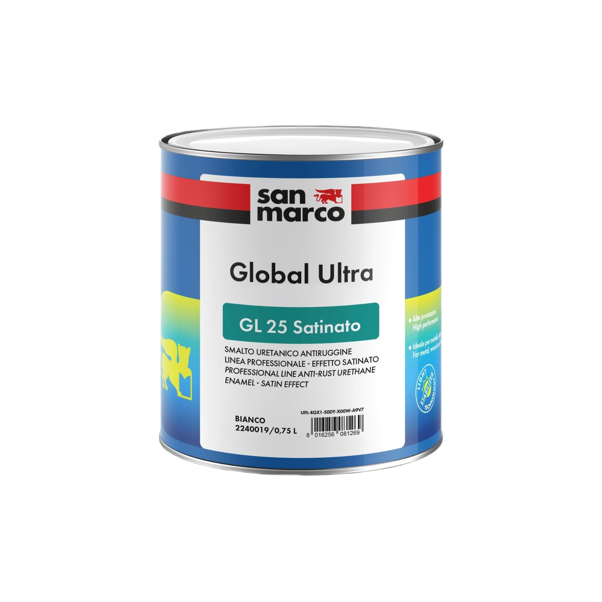 GLOBAL ULTRA GL25 SATINATO è uno smalto uretanico a effetto satinato per legno e ferro, particolarmente indicato per superfici o manufatti che necessitano di una barriera protettiva, anticorrosiva e antiruggine perché esposti alle intemperie, ai raggi UV o ad atmosfere aggressive come quelle degli ambienti marini, montani o industriali. GLOBAL ULTRA GL25 SATINATO può essere applicato sia su legno che su materiale ferroso e leghe di acciai, su superfici nuove o vecchie, anche già verniciate, all’interno o all’esterno. Perfetto per porte, infissi, battiscopa, travi o pannelli in legno come pure per cancellate, ringhiere o infissi metallici. GLOBAL ULTRA GL25 SATINATO è adatto anche a superfici zincate, PVC o leghe leggere purché preventivamente trattate come indicato nella scheda tecnica di prodotto.