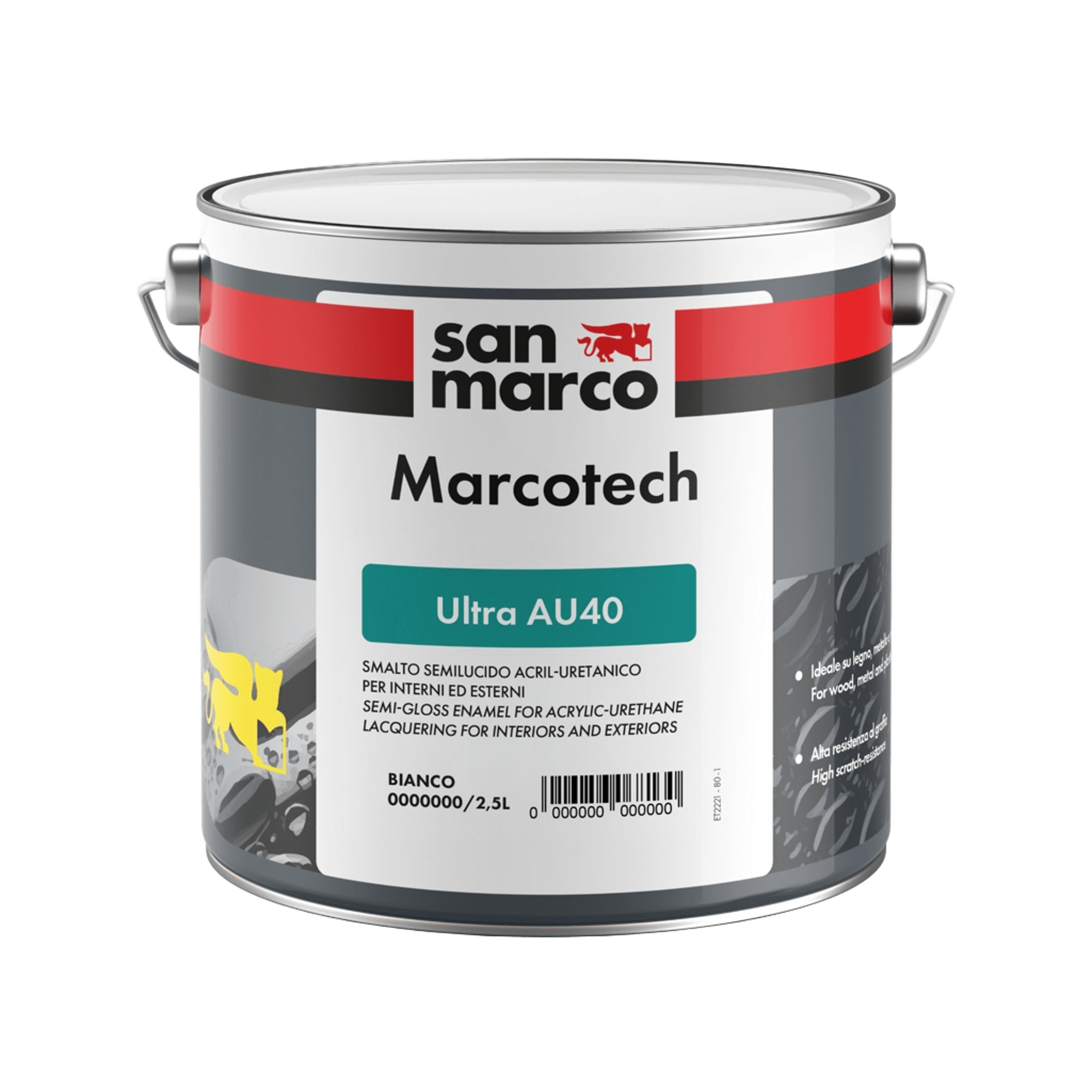 MARCOTECH ULTRA AU40 è uno smalto all’acqua per laccature semilucide ultraresistenti pensato per dare una nuova vita a porte e finestre. La sua speciale formulazione garantisce ai supporti trattati particolare protezione dagli agenti atmosferici e un’elevata resistenza a graffi, urti e abrasioni.