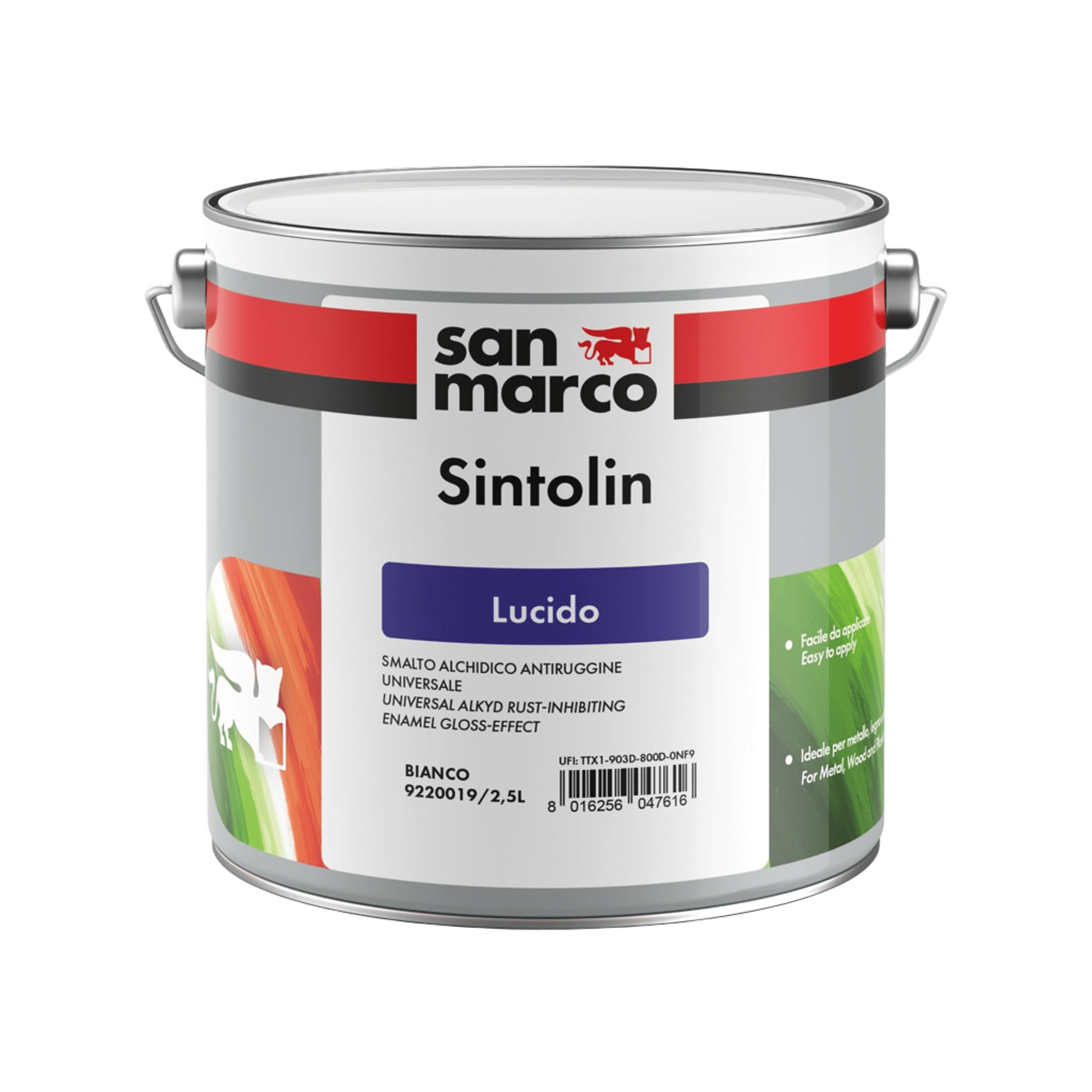 SINTOLIN è uno smalto a base di resine alchidiche indicato per ferro, legno, metallo e PVC. La speciale formulazione di SINTOLIN, con pigmenti anticorrosivi, fa sì che possa essere utilizzato come unico prodotto di fondo e finitura su ferro.